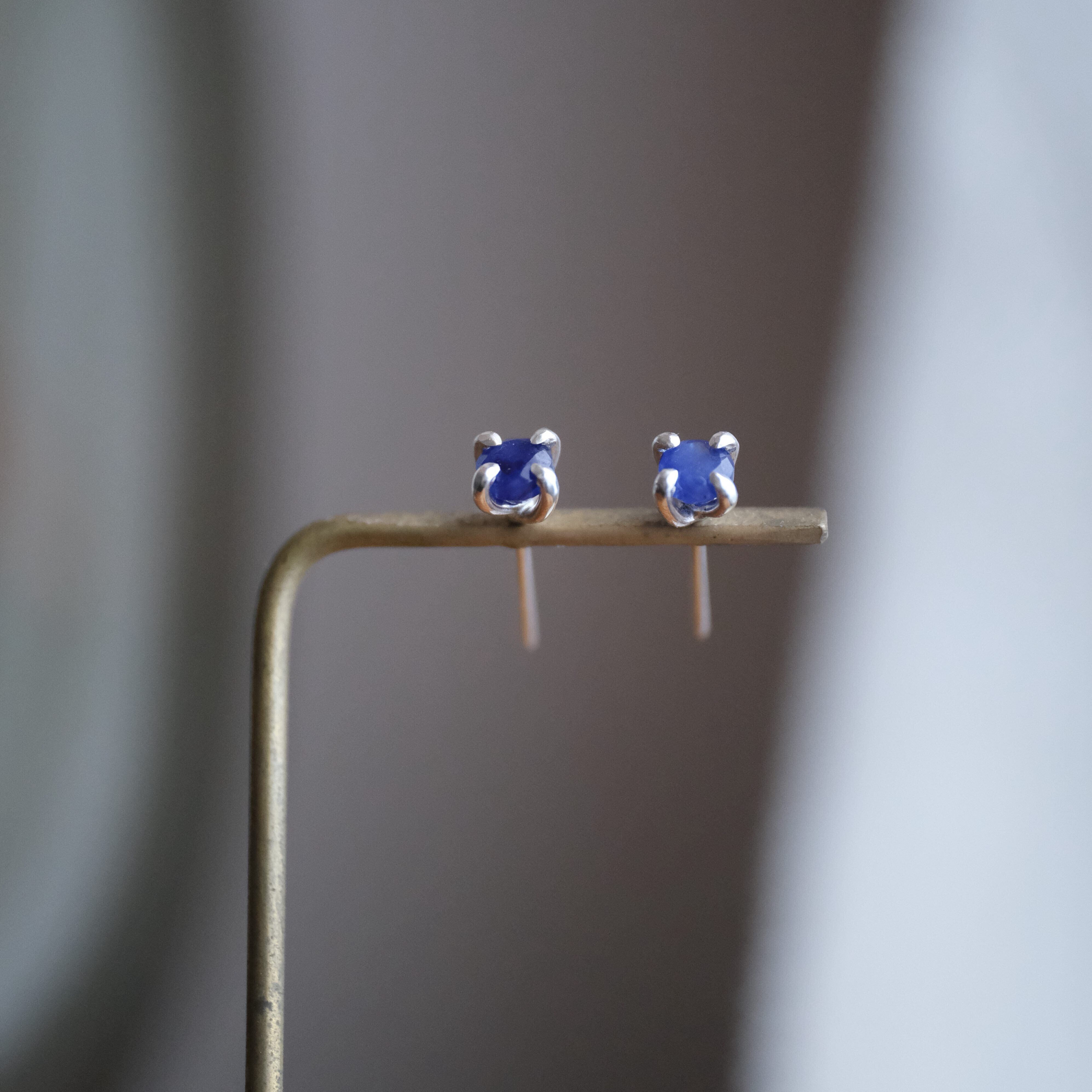 1粒のサファイアとシルバー950を使用したシンプルピアスです。