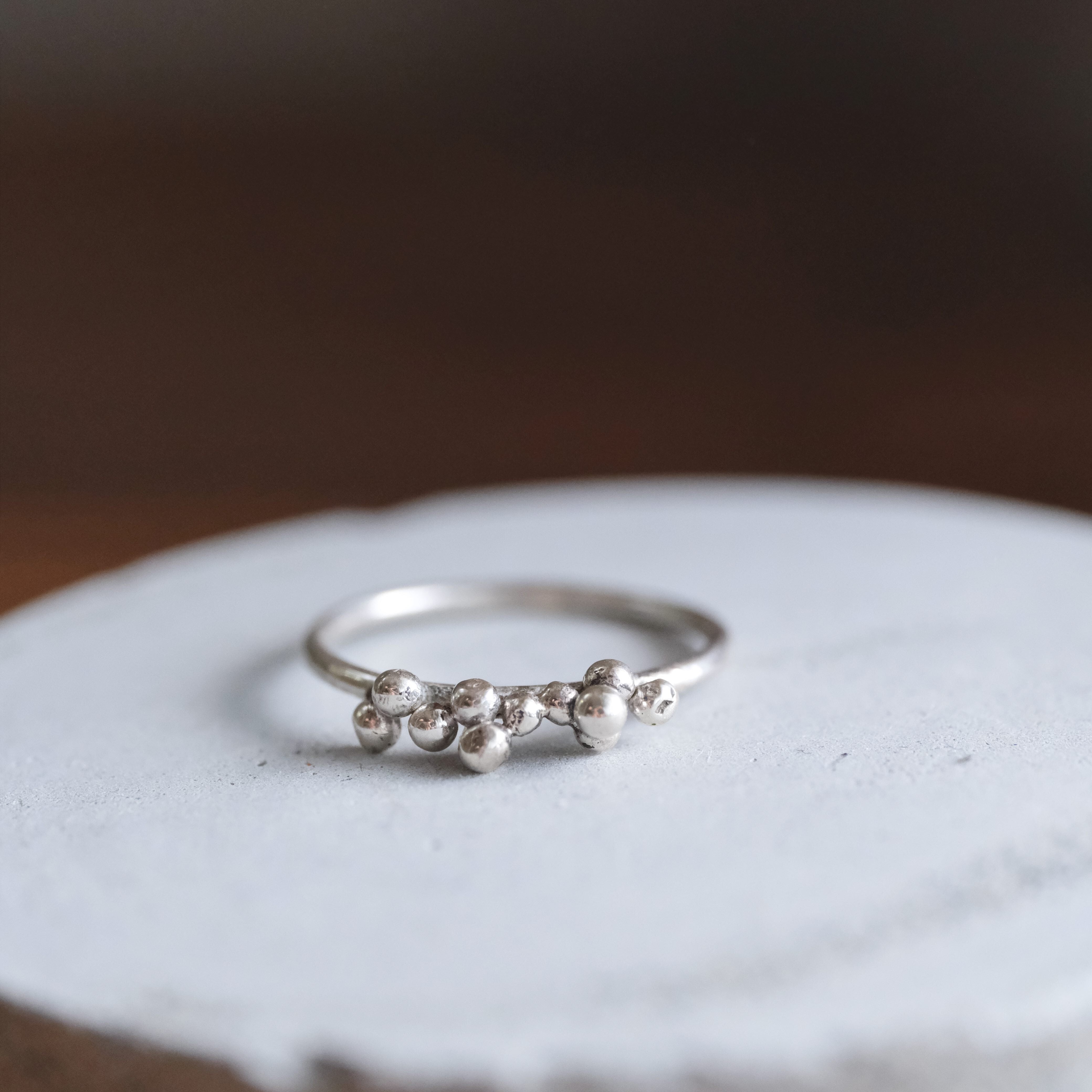 小さな粒が集まって連なったデザインが特徴の「Cluster」。
