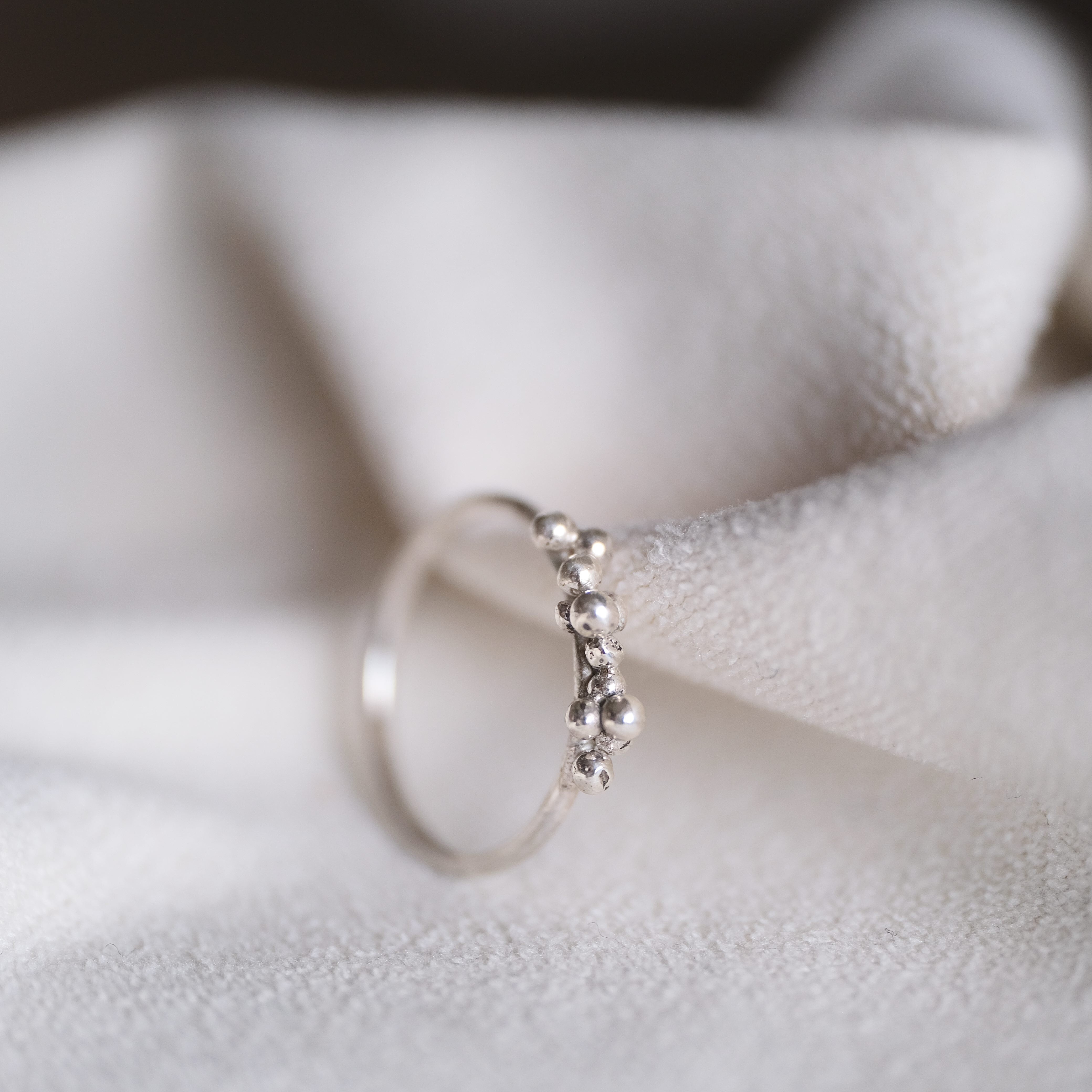 光を受けてさりげなく輝き、指先に柔らかな存在感を添えます。