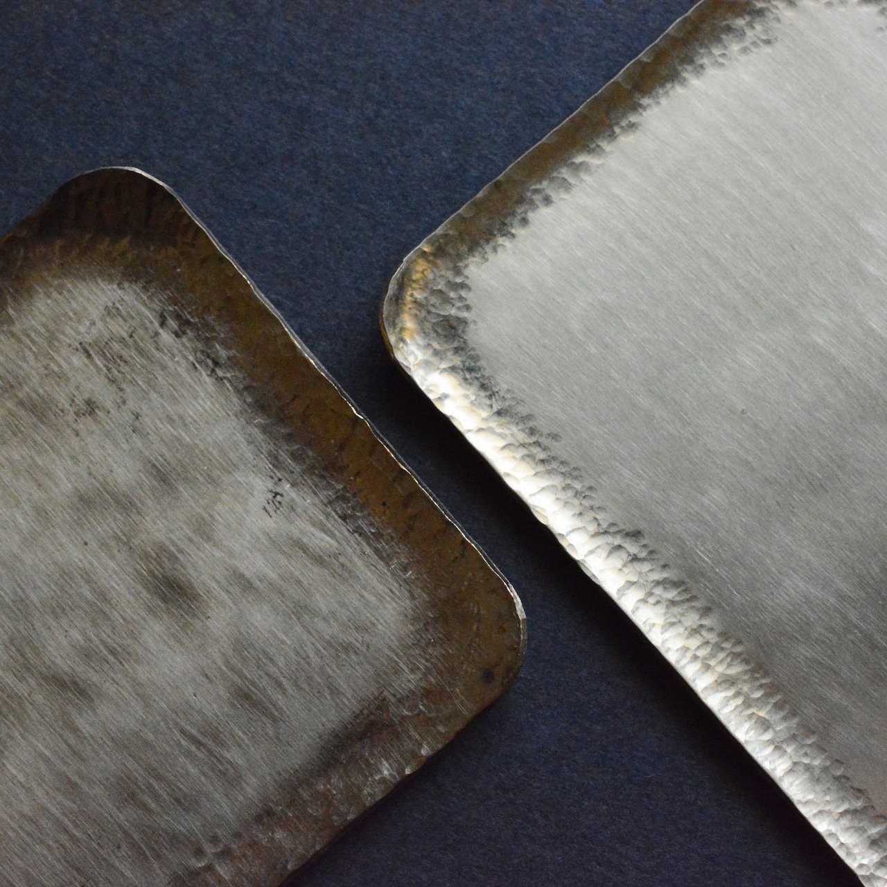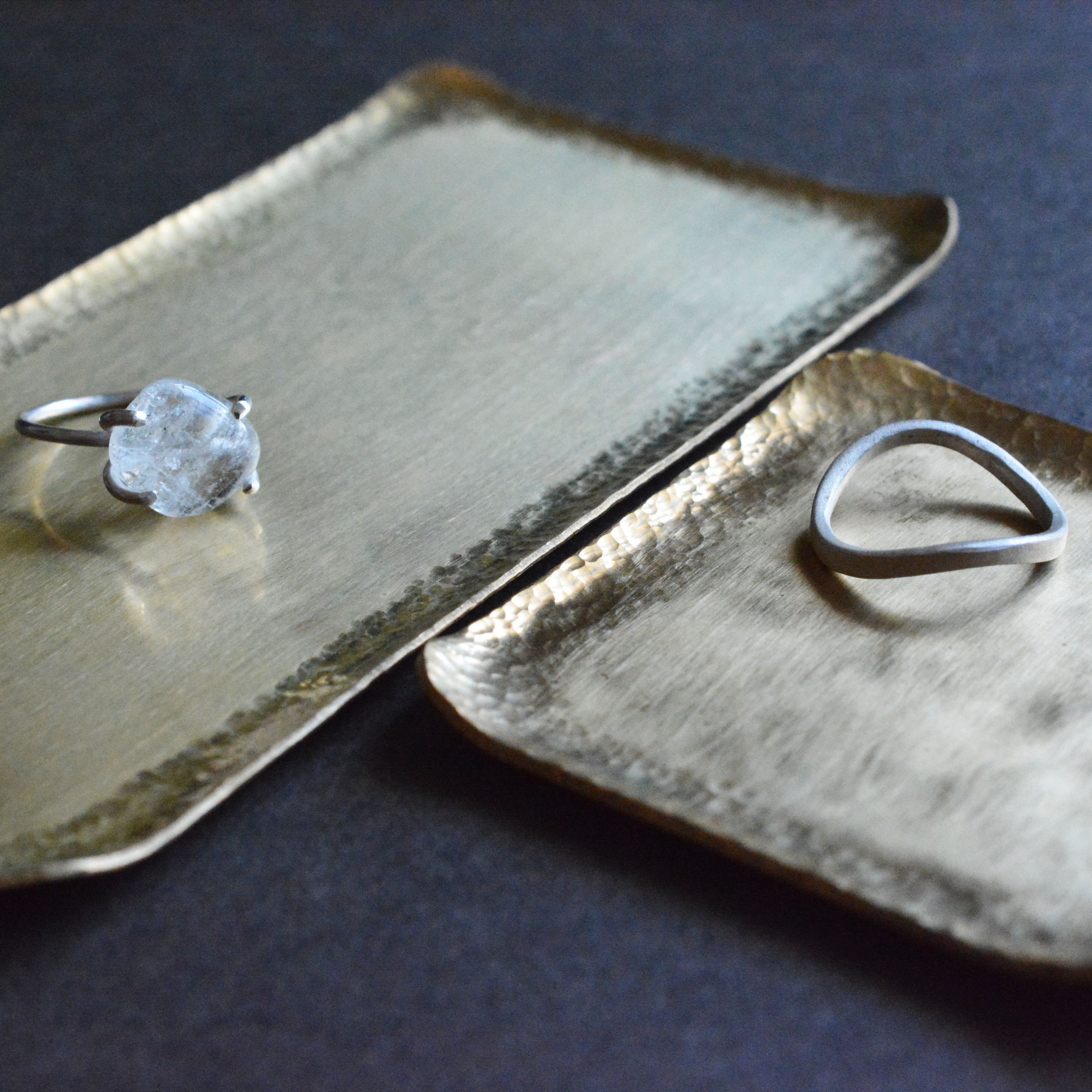一つ一つ手で槌目を縁に施し、ギラギラし過ぎずシンプルにまとめています。
