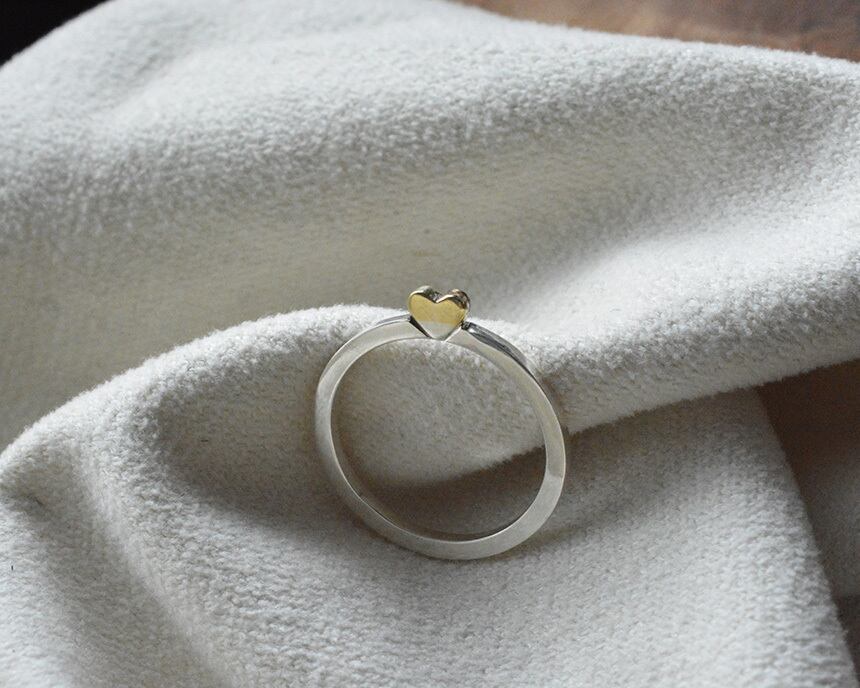 一見ただのシンプルリングに見えるのですが、横から見るとハートがさりげなく顔を出します。
