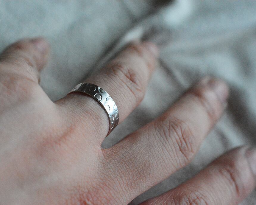 幅広ですがリングの厚みは0.7mmなので軽く、付けやすくなっております。