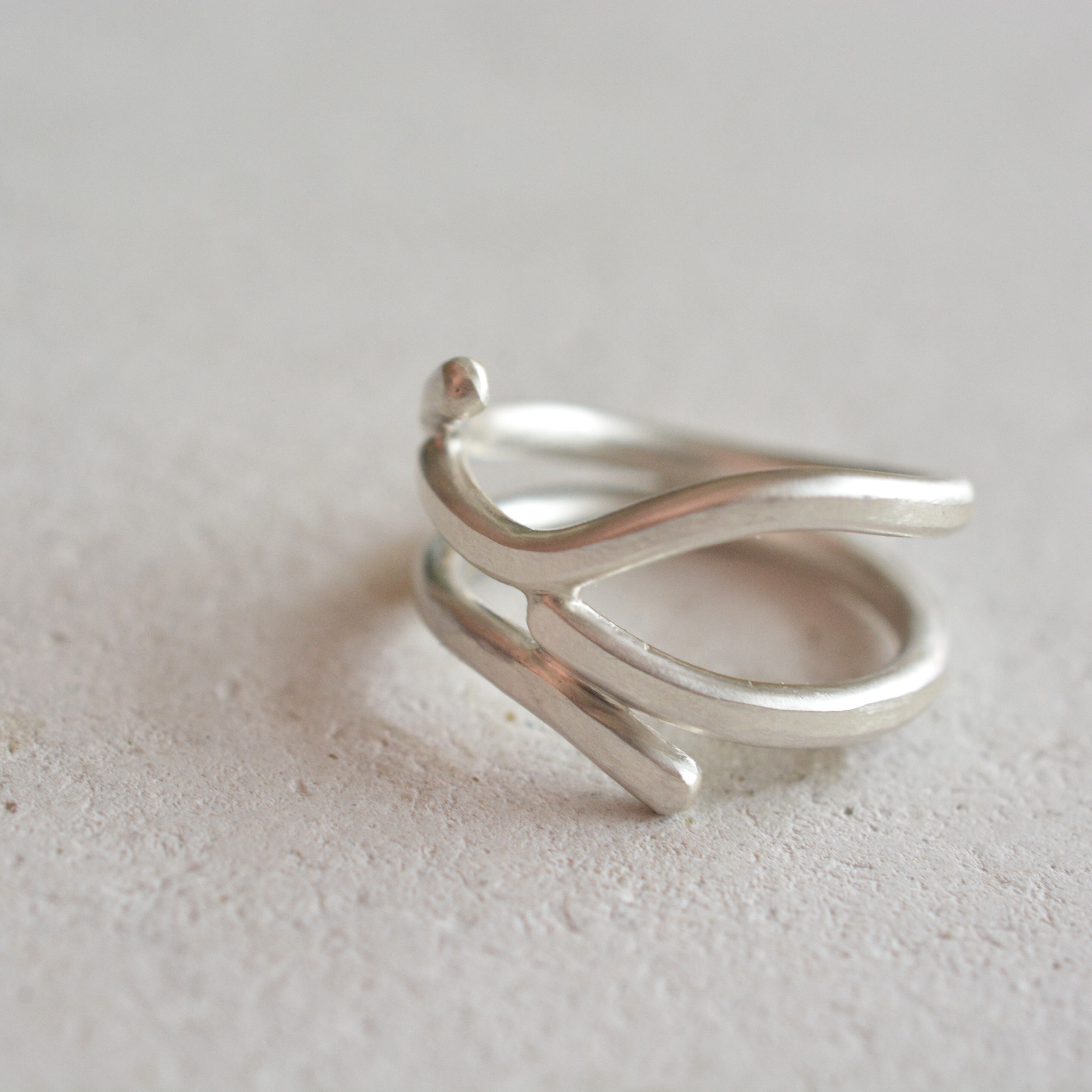 指にしっかりと巻きつき、ツタのように複雑に絡みつくデザインになりました。
