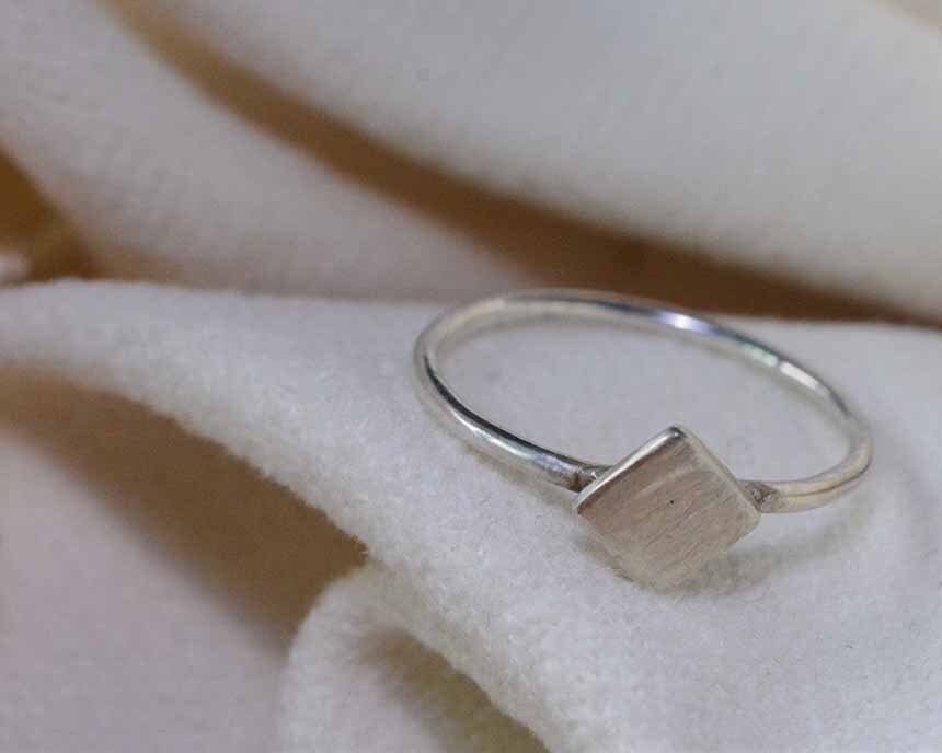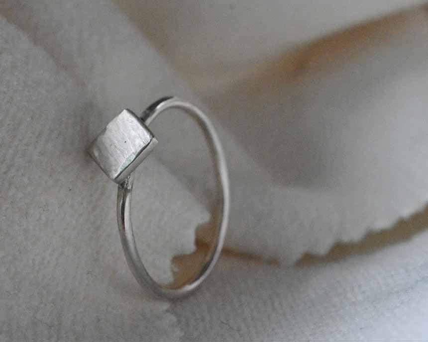 リング部分と同じシルバー950の銀板を使い、四角いモチーフをトップに付けました。