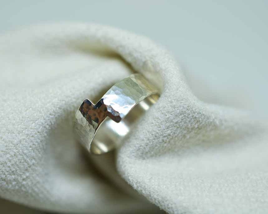 5mm幅の中心で少しずらしてアクセントをつけたデザインのリング
